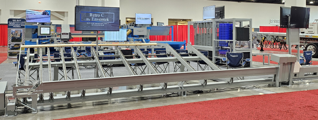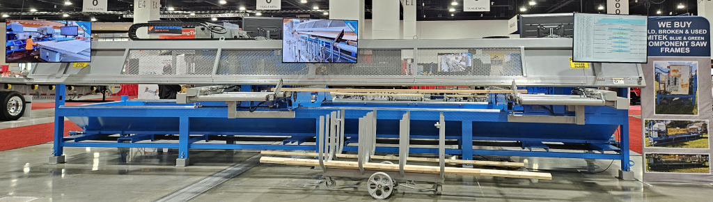 SpeedCatch – automatic lumber catcher and sorter for left side and right side of truss and cut-by-truss. Eliminates marking and handling of the cut pieces. Untouched by a human until the lumber hits the table. ( A saw feed rate of 18 pieces per minute will take 8.3 minutes to cut 150 pieces = 1,080 pieces per hour = 7,560 pieces in a 7 hour shift just try to keep the RetroC cutting at this rate)